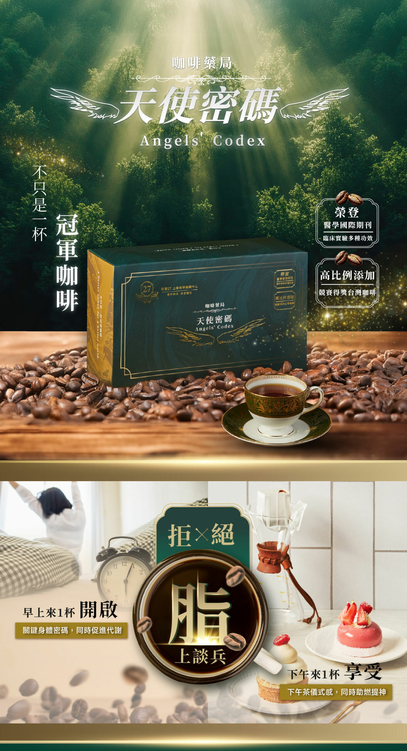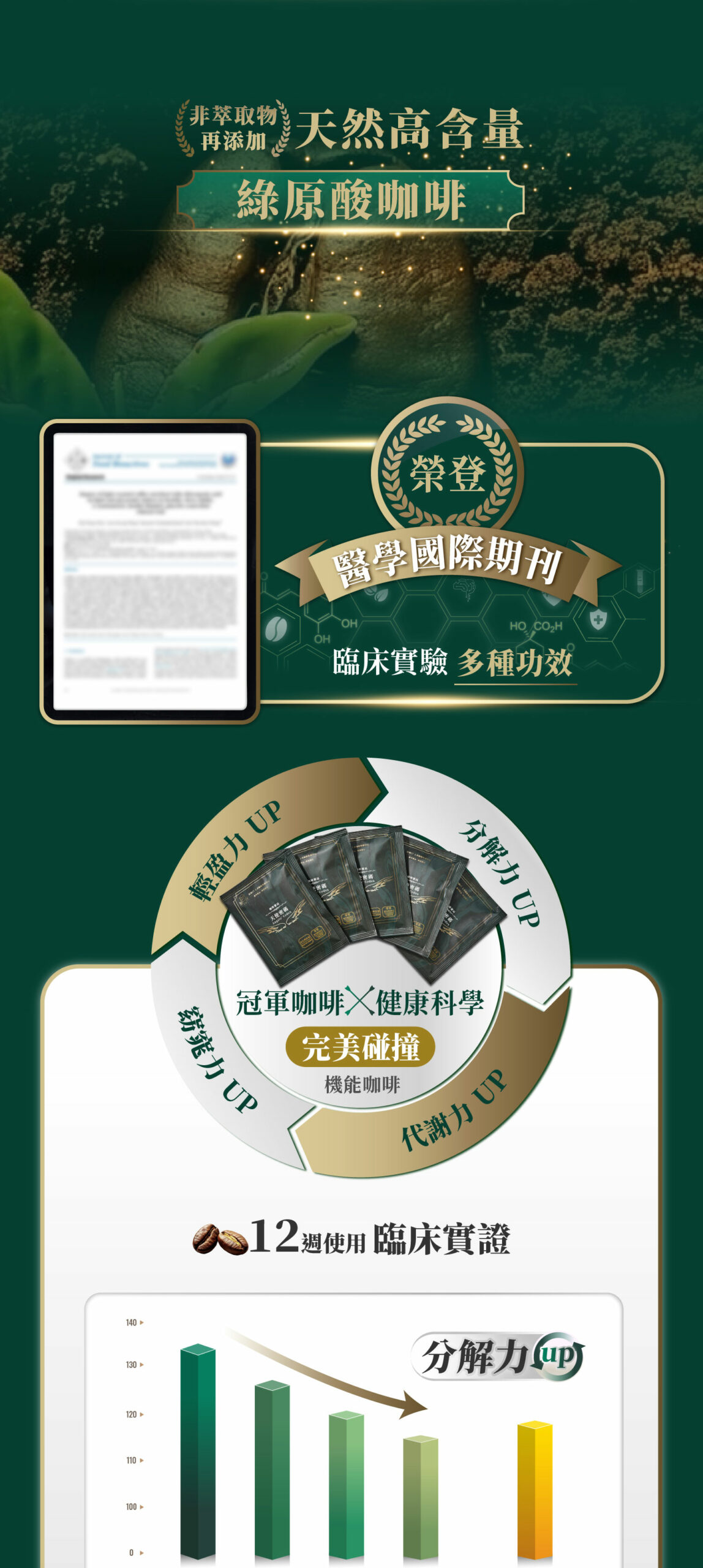 2.圖表化研究結果,塑造出健康科學的冠軍咖啡品牌形象,符合法規傳達綠原酸咖啡在市場上的獨家特色,給予消費者專業放心的感受。