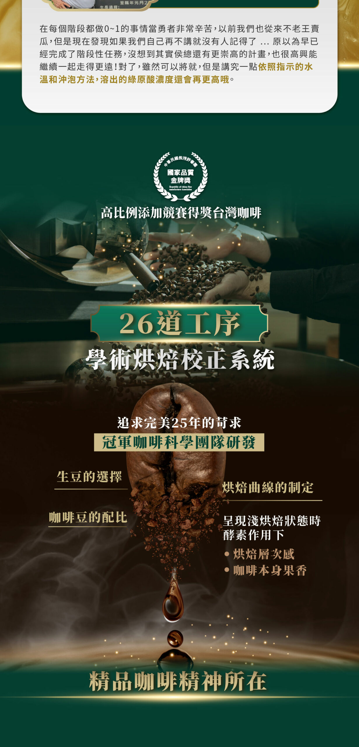 1.配合業主需求,以大地森林背景與色系為元素延申網頁設計,輔以咖啡豆、儀式感與商攝照片等融合,帶出冠軍咖啡的頂級質感。