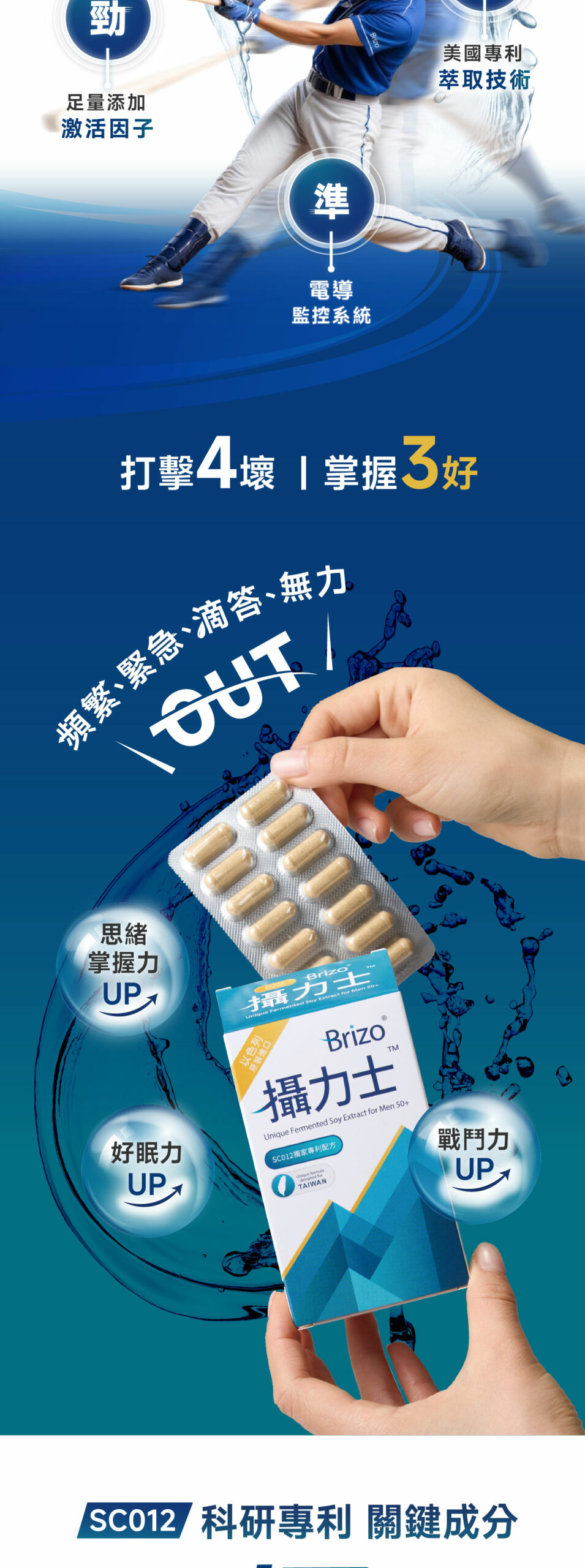 2.以棒球運動的「勁、準、速」隱喻產品三大特色,符合法規傳達產品市場唯一的專利特色,給予消費者專業放心的感受。