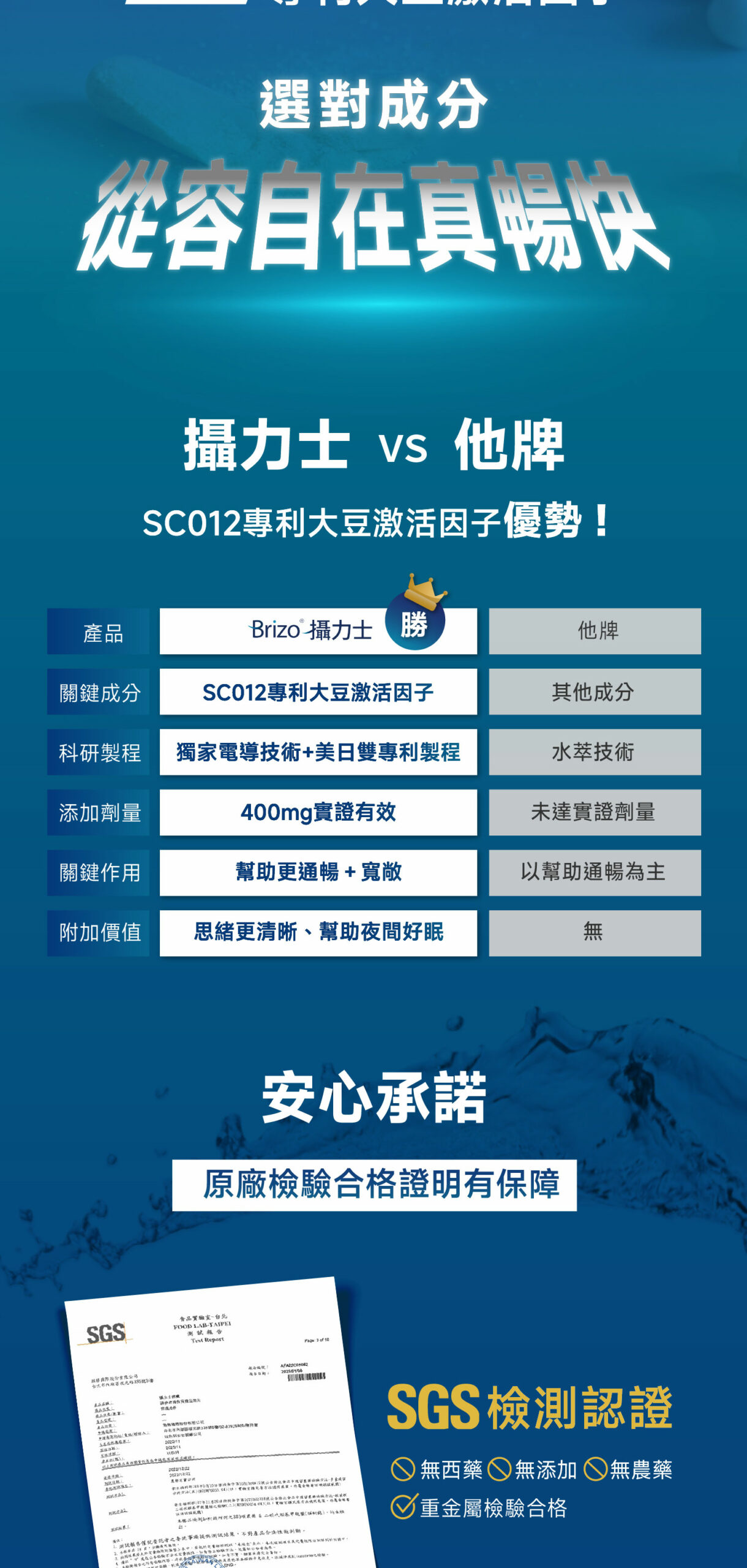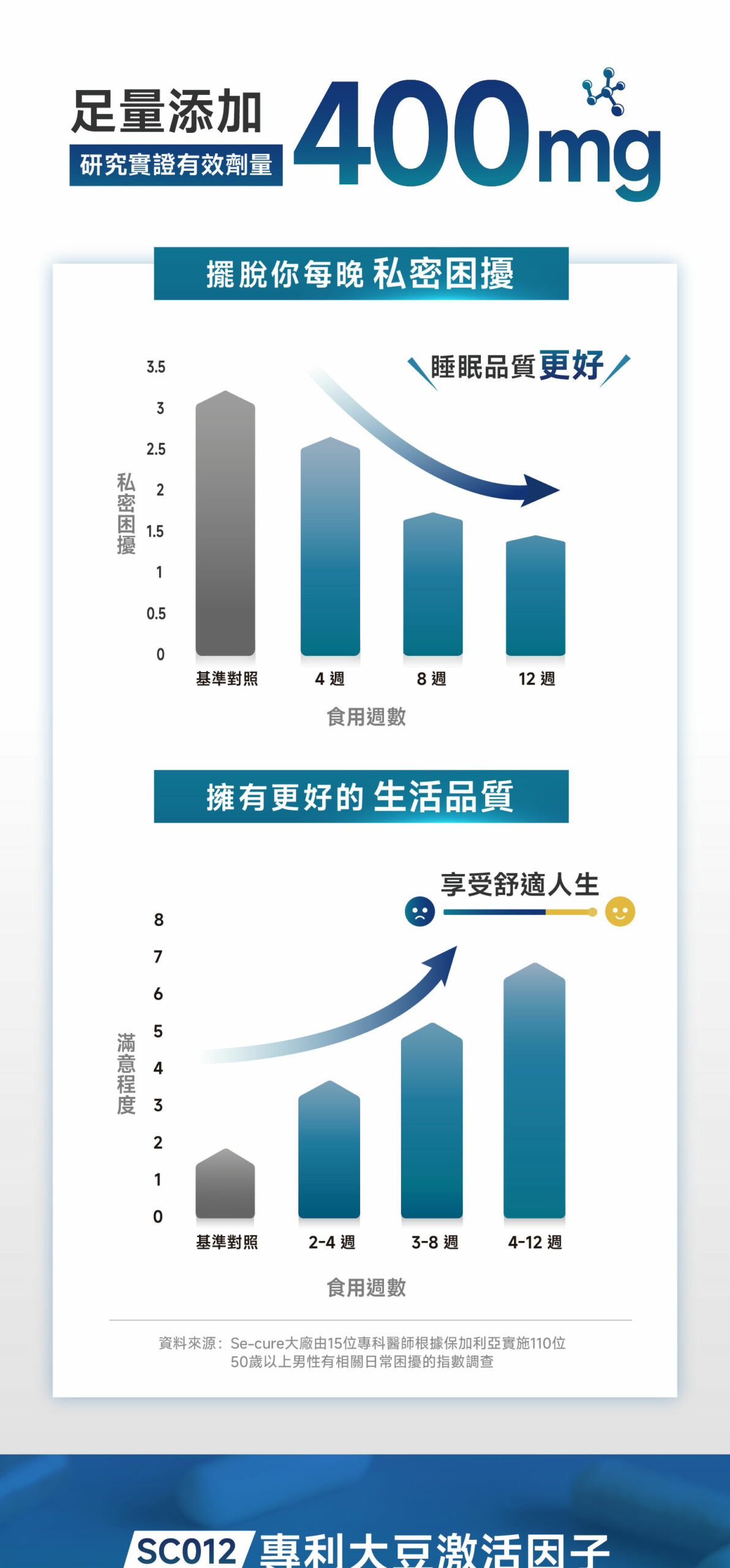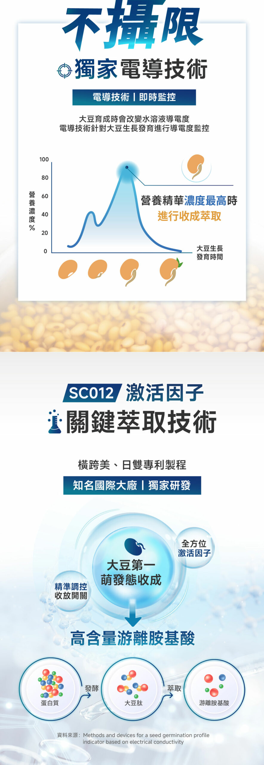 1.SC012專利大豆激活因子,論文研究指出具有雙重好處,一方面幫助維持順暢的生理機能,另一方面協助身體組織的健康運作