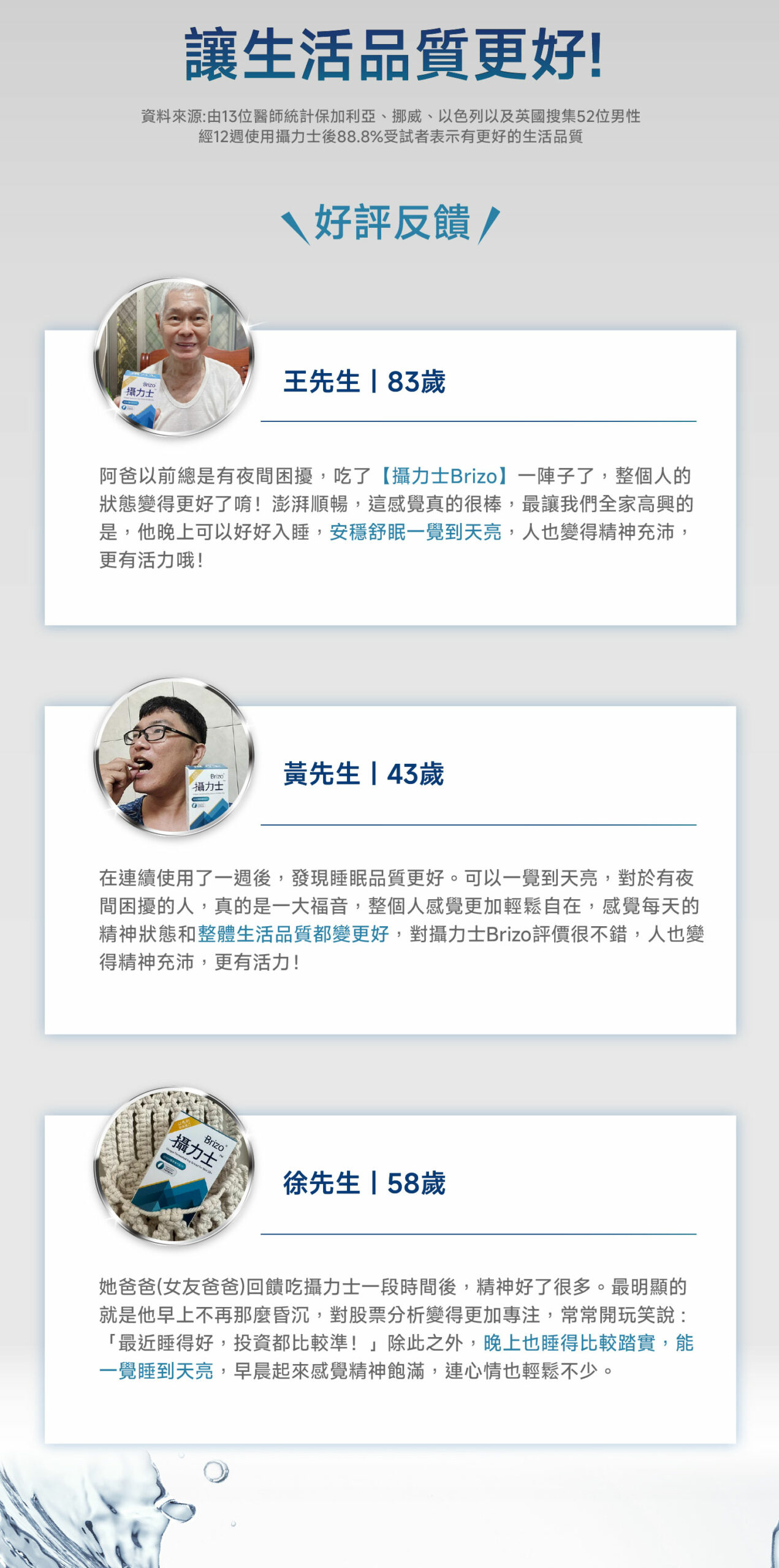2.食用者研究,有高達88%食用者表示,食用攝力士讓生活品質獲得改善