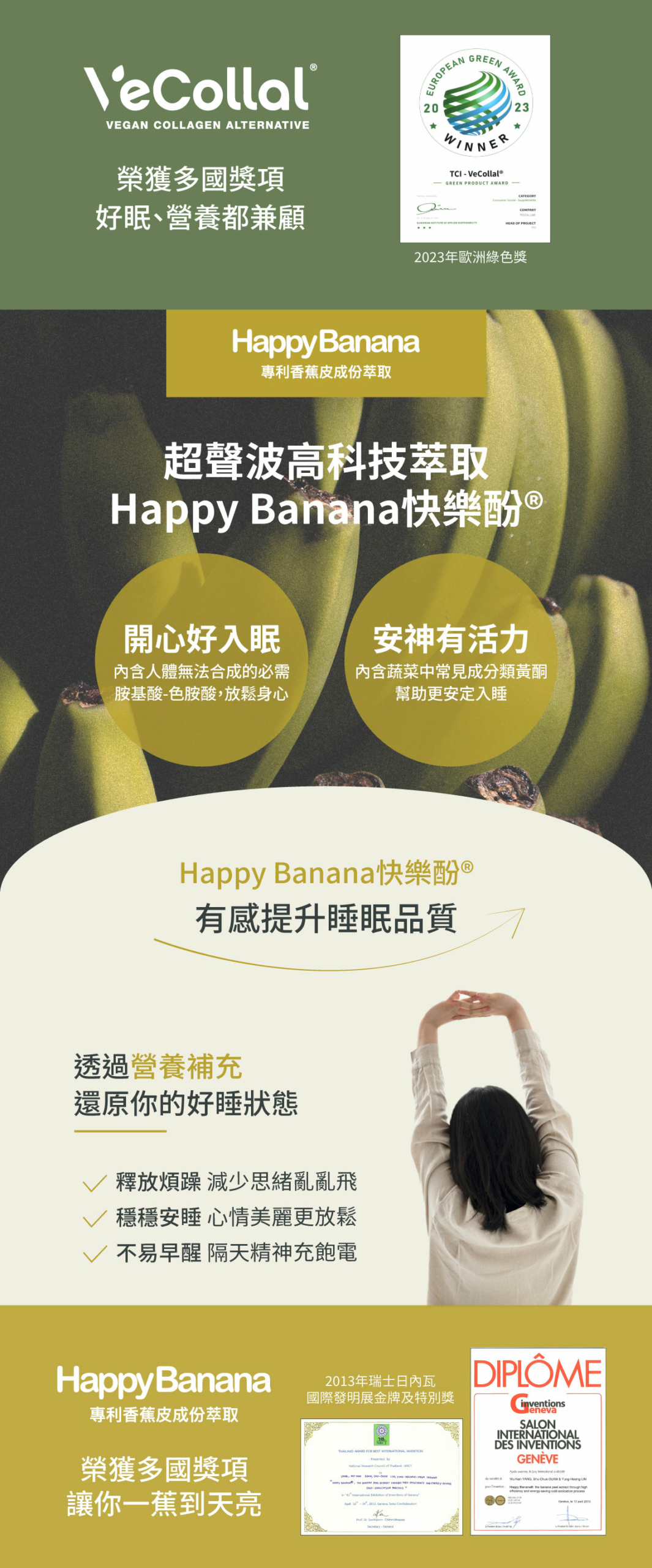 第一支非基改仿生膠原Vecollal X Happy Banana快樂酚 X Double NUTRI雙營專利